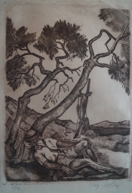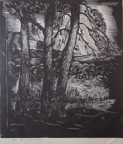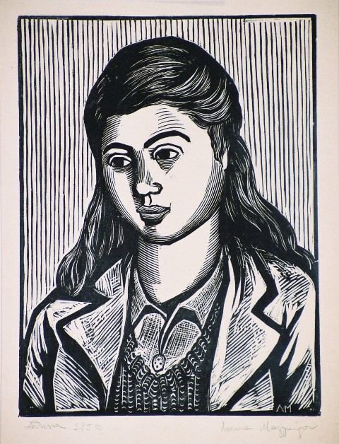 Παπαδημητρίου Ευθύμης (1895-1958), Γυμνό (για το βιβλίο του Στρατή Μυριβήλη Το τραγούδι της Γης [Ελληνική Συμφωνία]), 1937, ξυλογραφία σε όρθιο ξύλο, 12,5 x 14,7 εκ., 14/50, Πινακοθήκη Χαρακτικής Δήμου Ζίτσας.