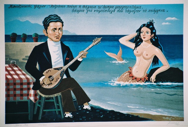 Κοκκινίδης Δημοσθένης (1929-2020), Από τη ραψωδία ε της Οδύσσειας, δοκίμιο έγχρωμης μεταξοτυπίας, 61,8 x 87,8 εκ., Πινακοθήκη Χαρακτικής Δήμου Ζίτσας.