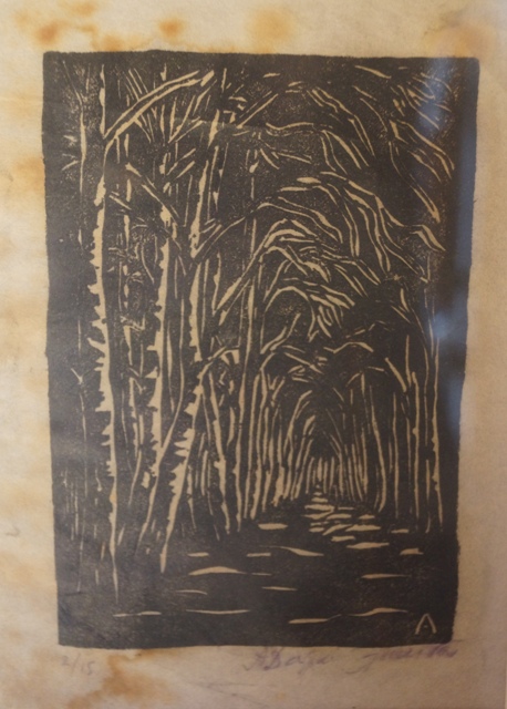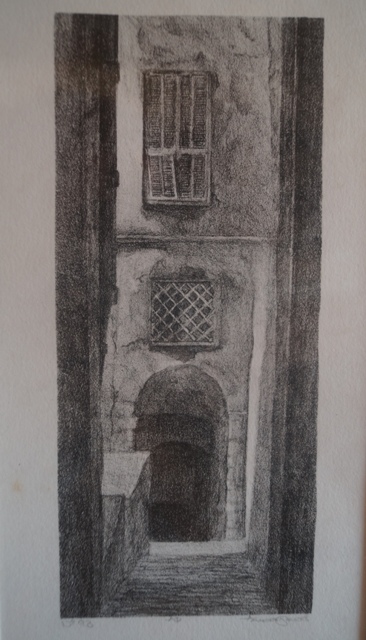 Μοντεσάντου Λουίζα (1917-2007), Το παλιό σπίτι, 1958, ξυλογραφία σε όρθιο ξύλο, 21,8 x 32,5 εκ,. 4/30, Πινακοθήκη Χαρακτικής Δήμου Ζίτσας.
